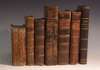 An introduction to physic and surgery, 1754, 8vo, contemporary calf, some worming affecting text; [Nuttall, J., publisher] The universal family physician, 1806, 8vo, engraved frontispiece, half calf, spotted & rubbed; Temple, Richard Practice of physic, 1798, second edition, 8vo, quarter morocco, library stamp on title, rubbed; Guybert, P. Le medecin charitable. Lyon: H. Huguetan, 1667, 2 volumes in one, contemporary calf, somewhat dampstained and spotted, worn; Culpepper, N. The English physician enlarged, 1784, 12mo, contemporary sheep, lacking frontispiece, worn; Salmon, W. Synopsis medicinae, 1671, 12mo, old calf, lacking several leaves, very worn; Quincy, J. Lexicon physico-medicum, 1722, 8vo, browning and damp-staining, old calf, worn; Gibson, T. The anatomy of humane bodies epitomized, 1684, 9 (of 16) plates, contemporary calf, some soiling, worn and another (9)
