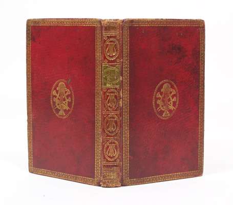 Poems on various subjects. Edinburgh: printed for Gordon and Murray; London: for Richardson and Urquhart, 1780, first edition, 12mo in fours, [8, ii, 135, i], contemporary red morocco gilt with an oval on covers enclosing intertwined lyre and trumpets, lyres in compartments on spine, red gilt ruled border, green morocco label, extremities very slightly rubbed, early inscription on title verso ascribing authorship to William Cameron, a few light spots