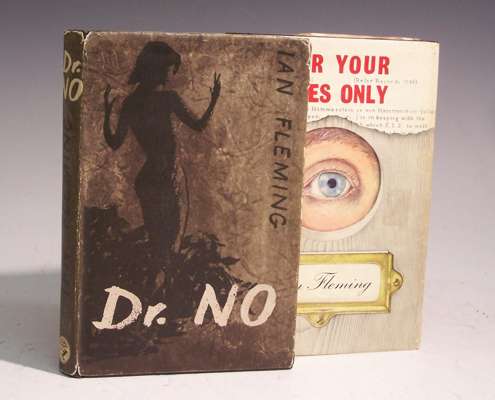 Dr. No. London: J. Cape, 1958. First edition, 8vo, original black and brown cloth, dustwrapper, small tears to hinges, rubbed at edges, dustmarked at rear, small ink inscripiton on front free endpaper