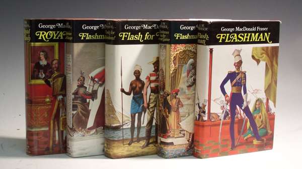 Flashman. London: Herbert Jenkins, 1969. First edition, 8vo, original red cloth, dustwrapper; Ibid. Royal Flash. London, 1970. First edition, 8vo, orignal cloth, dustwrapper; Ibid. Flash for freedom. London, 1971. First edition, 8vo, original cloth, dustwrapper; Ibid. Flashman at the charge. London, 1973. First edition, 8vo, original cloth, dustwrappers; Ibid. Flashman in the great game. London, 1975. First edition, 8vo, original cloth, dustwrapper; Ibid. Flashman's lady. London, 1977. First edition, 8vo, original cloth, dustwrapper; near-fine copies (6)