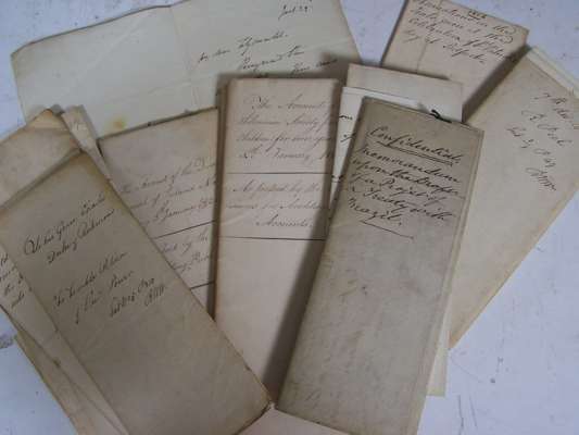 Eleven autograph letters signed to William Vesey-FitzGerald, 2nd Baron FitzGerald and Vesey, some referring to taxes, duties, the warehousing of spirits, one discussing currency, 1812-1814; and a small number of other items including a copy of a letter to Mr Peel, deputation from the Guild of Merchants concerning duty on admission, a petition to the Duke of Richmond, accounts of the Directors General of Inland Navigation, Account of the Commissioners for the reduction of the national debt; Account of the Hibernian Society for Soldiers' children, &c., 1812-14