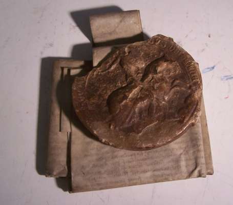 Royal Grant of King James IV of Scotland at Edinburgh 3rd March 1504 granting to John Sinclare of Hurdmanstoun all the lands of Hurdmanstoun with castle, fortalice and mill, together with the rights of patronage, advowson, and donation of the Chapel of St John the Evangelist, near the castle, lying within our shire of Edinburgh, manuscript on vellum, with Great Seal in wax attached, seal worn with slight loss, c.49 x 33cm, folded
