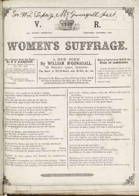 6 - Women's suffrage, 1884, ink signature along upper edge, 21cm by 28cm high, foxing, pencil marks;
