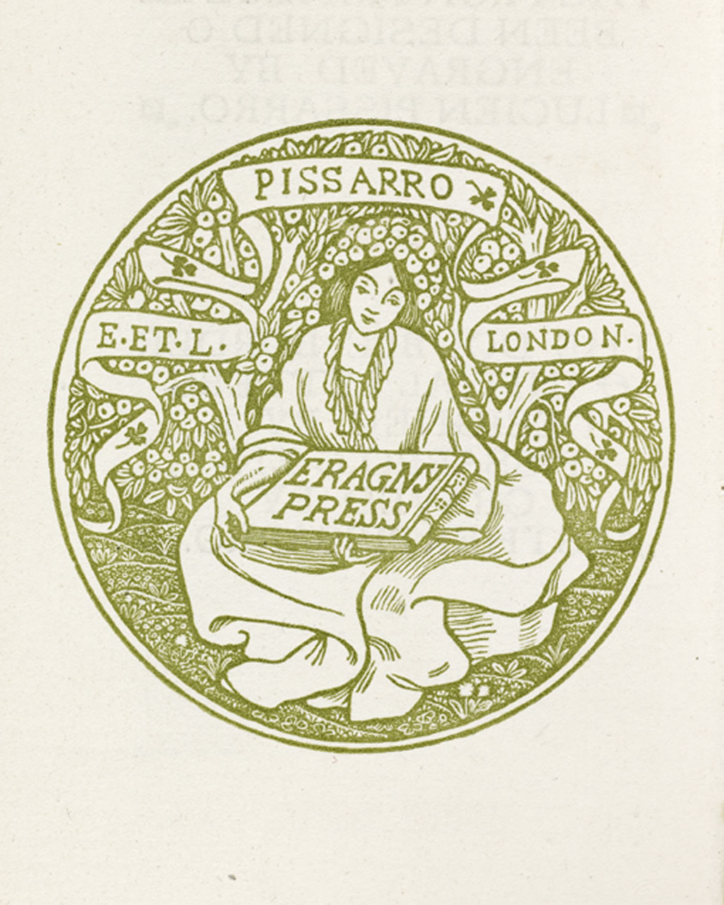 Of gardens, an essay. London: Hacon & Ricketts, 1902, 8vo, one of 226 copies, illustrated by Lucien Pissarro, engraved borders and vignettes, original decorative boards, some slight offsetting to endpapers, some small spots on upper board, interior clean