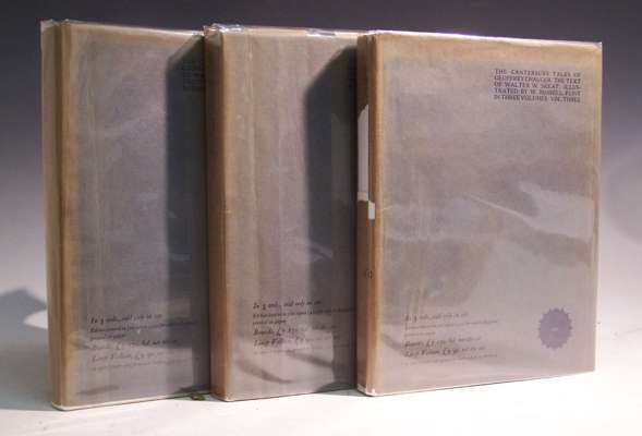The Canterbury tales. London: Riccardi Press, 1913, 4to, 3 volumes, number 150 of 500 copies, 36 tipped in plates by Russell Flint, original full vellum gilt, original ties, t.e.g., dustwrappers, volume three lacking section of dustwrapper (3)
