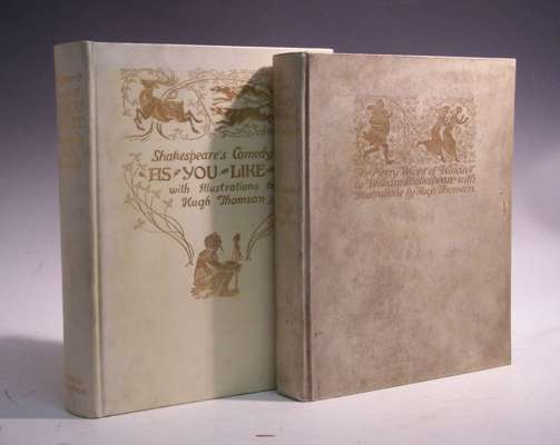 As you like it. London, [1909], 4to, number 160 of 500 copies, signed by the artist, 40 tipped in plates, original vellum gilt, lacking ties, some fading to backstrips, very occasional spotting; Ibid The merry wives of Windsor. London, 1910, 4to, number 117 of 350 copies, signed by the artist, 40 tipped in plates, original vellum gilt, heavily dustmarked, lacking ties, occasional spotting to endpapers (2)