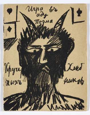Igra v adu: poema [Game in hell: a poem]. Moscow: [G.L. Kuzmin & S.D. Dolinsky, 1912], first edition, 8vo (183 x 137mm.), [one of 300 copies], lithographed throughout with hand-written text by Kruchenykh and 15 lithographed illustrations and lithographed cover by Natalia Goncharova