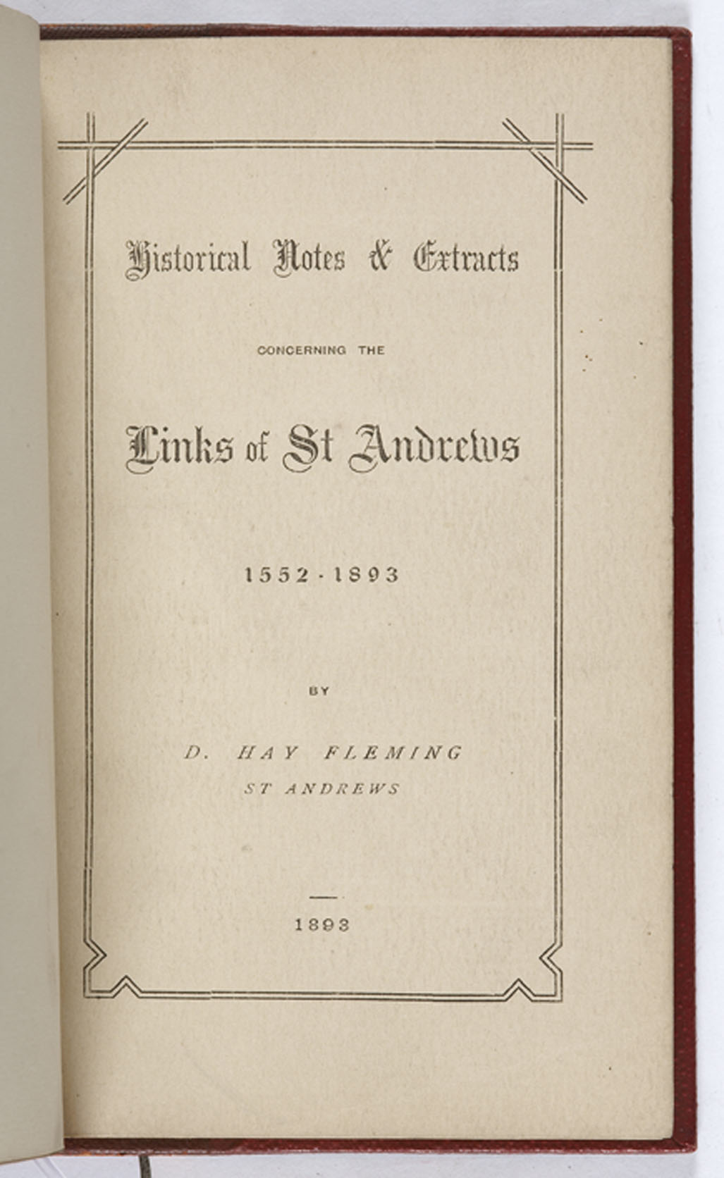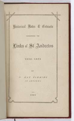 Historical notes & extracts concerning the links of St. Andrews 1552-1893. St. Andrews: D. H. Fleming, 1893, first edition, 12mo, red quarter morocco, worn, original wrappers bound in