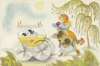 Note: The illustration shows Orlando and Grace pushing a pram containing three kittens: Tinkle, Blanche and Pansy. The drawing is captioned by the artist below the mount.