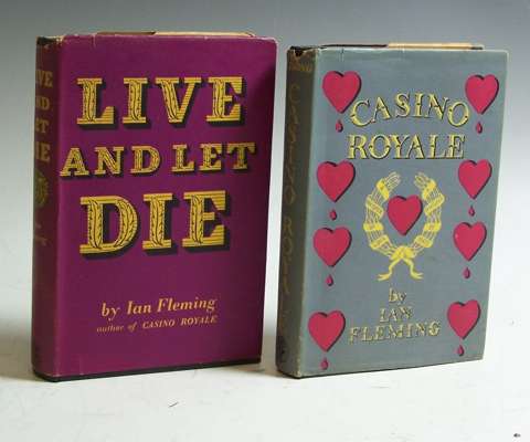 Casino Royale. London, 1954. Third impression, 8vo, original black cloth, dustwrapper, chipped at head of backstrip [some text loss to authors name]; [Ibid.] Live and let die. London: Jonathan Cape, 1954. First edition, second impression, 8vo, original black cloth gilt, dustwrapper, not price clipped, 0.5 x 2cm wide section lacking from head of backstrip, some browning, no inscriptions (2)
