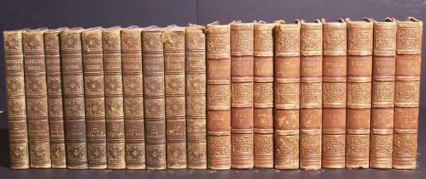 Waverley novels. Edinburgh, 1854. 16mo, 25 volumes, frontispieces, vignette titles, contemporary half green morocco gilt, rubbed; Byron, Lord Works... London, 1832-33. 16mo, 17 volumes, frontispieces and vignette titles, contemporary half morocco gilt, rubbed, some browning to titles; and 18 others (60)