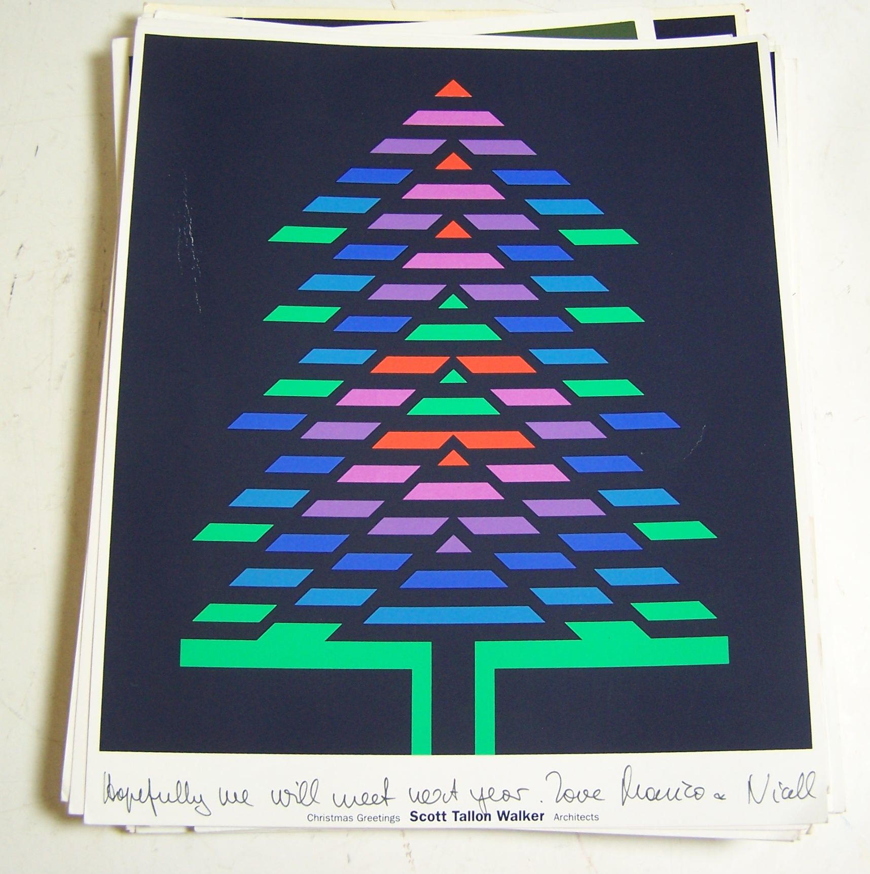 of Donald McDonald, John McDonald and others, 27 commissions, on vellum or paper, signed at head by George II, George III, and Queen Victoria, some soiling and staining, a few tears; Scott, Peter. Fifteen screenprint Christmas cards, limited to 50 copies, signed and dated in pencil, Christmas greeting in pencil from "Pat" or "Pat & Pat" on rear, two waterstained, one discoloured with short tear, some with light surface scratches or marks; and 8 others, not limited or signed, from Scott Tallon Walker architects, 4 inscribed by Monica, four creased