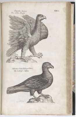 The ornithology. London: John Martyn, 1678. First edition in English. Folio, title page printed in red & black, 80 engraved plates including 2 plates on the art of fowling, half dark green morocco with marbled boards, gilt bird motif in compartments, one plate with tear neatly repaired, tiny wormhole to a few plates and to lower margin of A1-4, QQ4 rather crudely repaired but without any loss, a few light spots