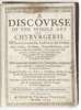 A discourse of the whole art of chyrurgerie... with the presages of divine Hippocrates. London: printed by Thomas Purfoot, 1634. Third edition, 4to, 20 woodcut illustrations, 19th century calf gilt, heavily rubbed, lower board loose, replacement endpapers, bookplate