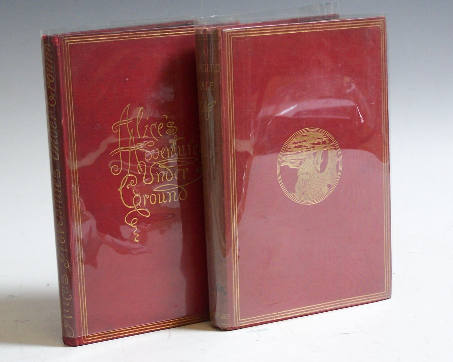 Alice's adventures under ground. London: Macmillan and Co., 1886. First edition, 8vo, illustrations and facsimile manuscript by the author, hinges splitting, minor tears to end-papers; [Ibid.] A tangled tale. London, 1886. First edition, fourth thousand, 8vo, illustrations by Arthur B. Frost, upper hinge split, minor soiling at foot of spine; original red pictorial cloth gilt, gilt edges, head and foot of spines slightly bumped (2)