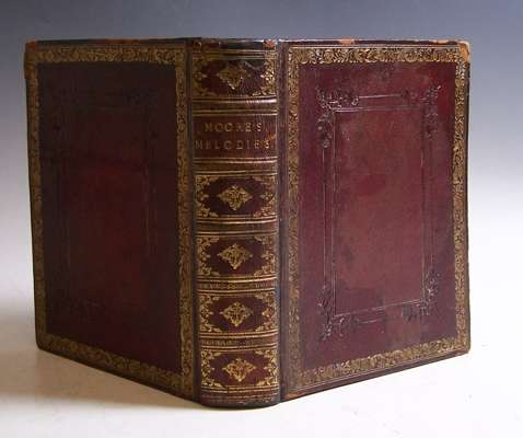 Moore, G. Irish melodies. London: W. Mackenzie, [c.1870]. 4to, engraved plates, contemporary red-brown morocco gilt, g.e., double fore-edge painting of Philadelphia (showing the Peace Tree) and Boston, rebacked retaining original spine, corners rubbed