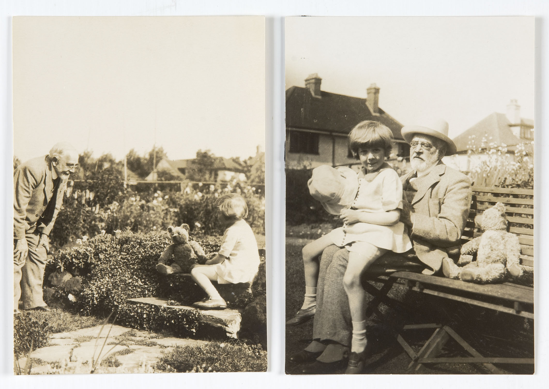 Note: The photographs depict Christopher Robin with his grandfather who was headmaster of Streete Court, the prep school at Westgate on Sea in Kent. Christopher Robin's father, A.A. Milne, was a pupil at the school. Growler was Christopher Robin's own bear who was used by his father as the inspiration for the Winnie-the-Pooh stories.