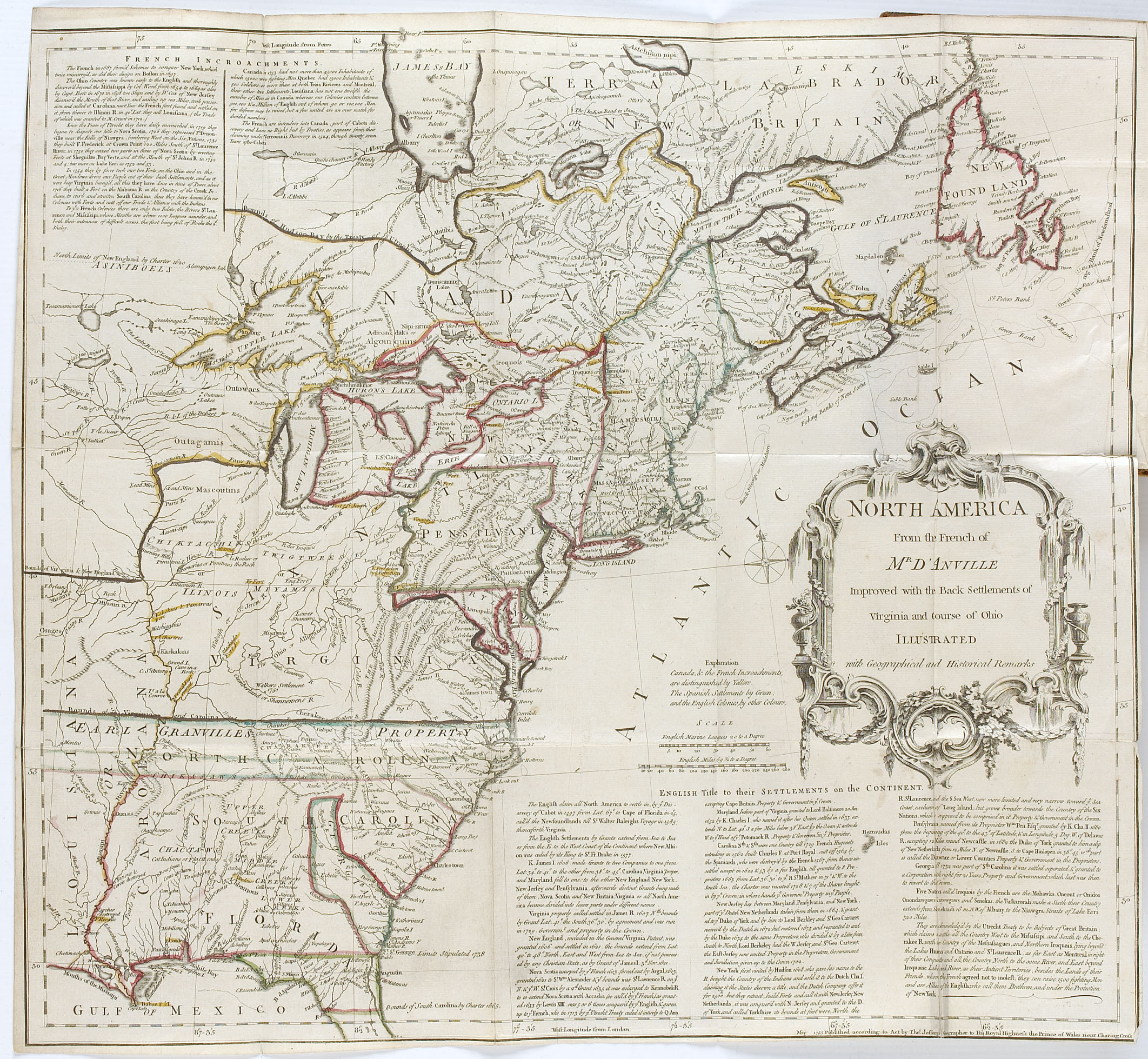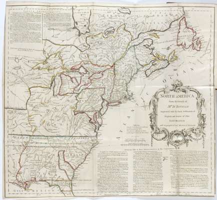 A summary, historical and political, of the first planting, progressive improvements, and present state of the British settlements in North America. Boston, New-England, printed, London reprinted, 1755. First English edition, 2 volumes, 8vo, large folding engraved map hand-coloured in outline, contemporary speckled calf, very neatly rebacked, spine gilt, morocco lettering pieces