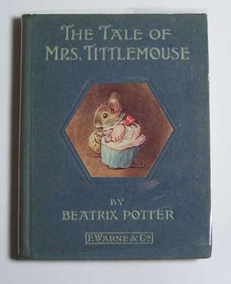 The tale of Mrs Tittlemouse. London: Frederick Warne and Co., [July or November] 1910. First edition, first or second issue, 16mo, 27 coloured illustrations by Beatrix Potter, original blue-grey boards, pictorial label on upper cover, some occasional light soiling, head of spine frayed