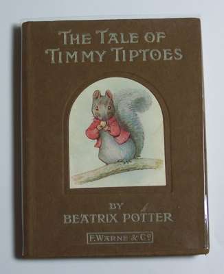 The tale of Timmy Tiptoes. London, Frederick Warne and Co., [October or November] 1911. First edition, first or second issue, 16mo, 27 coloured illustrations by Beatrix Potter, original brown boards, pictorial label on upper cover
