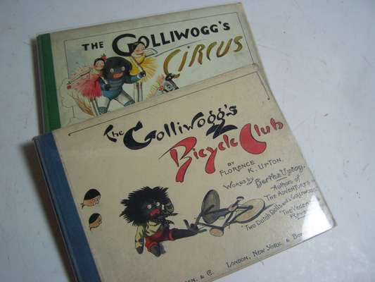 The golliwogg's circus. London: Longmans, Green & Co., 1903. First edition, oblong folio, original cloth-backed pictorial boards, binding bumped and slightly soiled with extremities chipped, occasional tears to extremities of leaves with some repairs; [Ibid.] The golliwogg's bicycle club. London, 1903. New edition, oblong folio, original cloth-backed pictorial boards, binding bumped and slightly soiled with extremities chipped (2)