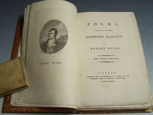 Poems, chiefly in the Scottish dialect. London: printed for A. Strahan, T. Cadell, 1787. Third edition, 8vo, portrait frontispiece, half title, later red morocco gilt by Riviere, later endpapers