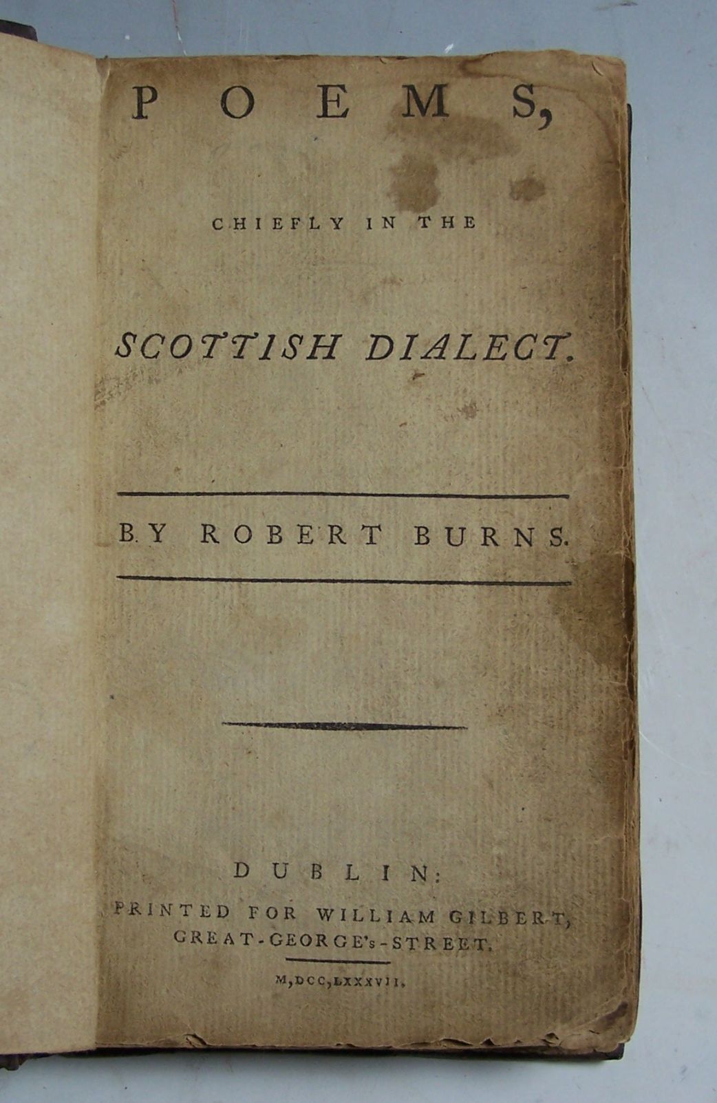 Poems, chiefly in the Scottish dialect. Dublin: printed for William Gilbert, 1787. First Dublin edition, 8vo, contemporary calf, rebacked, inner hinges strengthened, some chipping to edges of title, some small stains