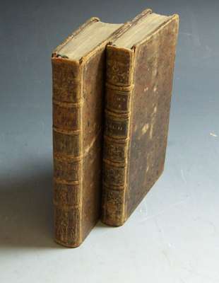 The life, and strange surprizing adventures or Robinson Crusoe... the seventh edition. London: W. Mears & T. Woodward, 1726. 12mo, 7 engraved plates, 2pp. advertisements at end, corner of p.35 and 125 torn away with loss of a few letters; [Idem] The farther adventures of Robinson Cruose... the fifth edition. London: W. Mears & T. Woodward, 1726. 12mo, folding map and 6 engraved plates, a few plates shaved, uniform contemporary calf, spines gilt, slightly rubbed (2)