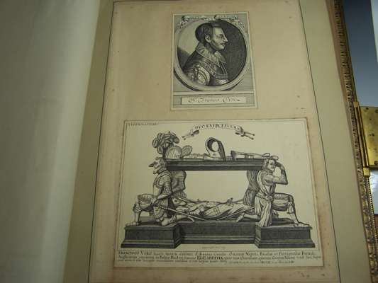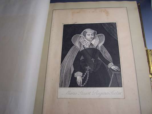 Graphic drawings by the late Capt. Thomas Fernyhough, governor of the Military Knights of Windsor. [London, after 1844]. Folio, 121 ink drawings by Fernyhough from study of Granger's Biographical history of England, mounted on 70 leaves with manuscript text on versos, with holograph note in Fernyhough's hand with answer by his son at foot, full red morocco gilt by Cook & Son, with brass clasp, rubbed at edges, some leaves chipped at edges, some leaves loose