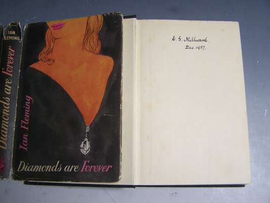 Diamonds are forever. London: J. Cape, 1956. First edition, 8vo, original cloth, dust-jacket frayed with slight loss at extremities, lower cover slightly soiled, owner's inscription on front endpaper
