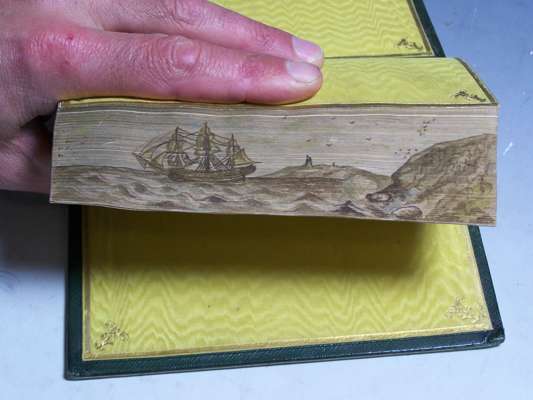 Tales. 1812. 2 volumes in one, 12mo, contemporary green morocco gilt, g.e., with fore-edge painting of a full-rigged sailing ship off a coast, yellow gilt-edged watered silk endpapers, half-title, bound without half-title and preliminary leaves to volume 2