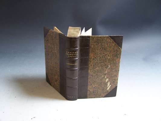 An account of the English dramatick poets. Oxford: Printed by L[ichfield] for G. West & H. Clements, 1691. First edition, 8vo, [16, 556, 34], errata leaf at end, late ninteenth century black half morocco, t.e.g., title laid down but with window on verso to B.M. 1818 duplicate stamp, lower margin of a3 repaired, some spotting and slight discolouration