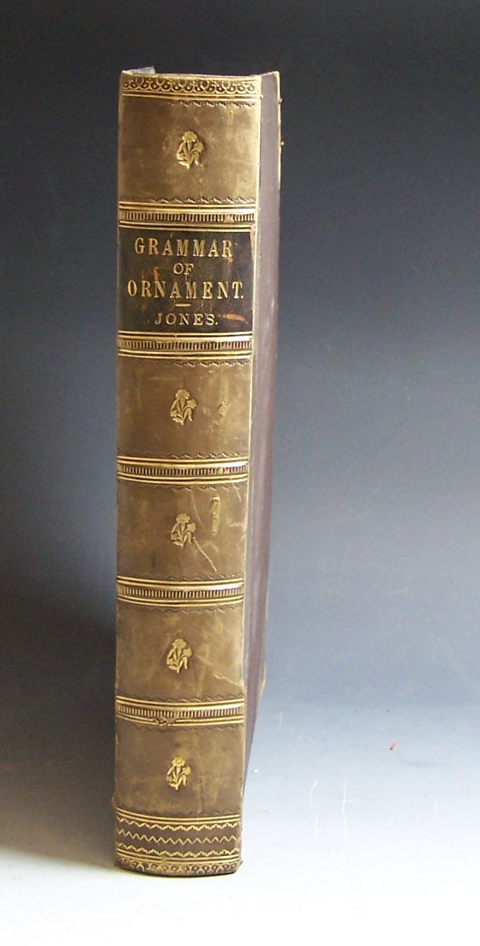 The grammar of ornament. London: B. Quaritch, 1868. Folio, 111 chromolithographed plates, contemporary half calf, gilt, short splits to joints at foot, some spotting of text