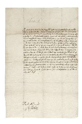 Letter signed at the head (Charles R) to an unamed correspondent but clearly the Privy Council in Scotland ("Right trusty & wellbeloved Cosens & Counsellors"), announcing his determination to stamp out "the practise of exorbitant and unsufferable usury, which of late yeres is cum into ane ordinary trade of many merchants ther," "Given att our Court att Whythall this 23 of March 1632 styl. Angl" [i.e. 1633 new style]. 1 page, folio, with integral blank leaf, slightly dustmarked