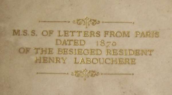 Note: These "letters" were written by Henry Labouchere to The Daily News from Paris during the siege of 1870-71 under the "nom-de-plume" of "our besieged resident". They were addressed to Mr Robinson, editor of The Daily News, and later came into the possession of of Henry Oppenheim who at that time was one of the proprietors of the paper.