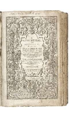 A new herbal, or historie of plants. London: Edward Griffin, 1619. Small folio, title within woodcut border, a few early marginal sketches of botanical specimens, some light spotting and dust-soiling, lacks ZZ2 [pp.533-534], small tear to p.295 without loss, pages 367-368 torn with loss of a few letters, spine worn at base and with a short tear at head