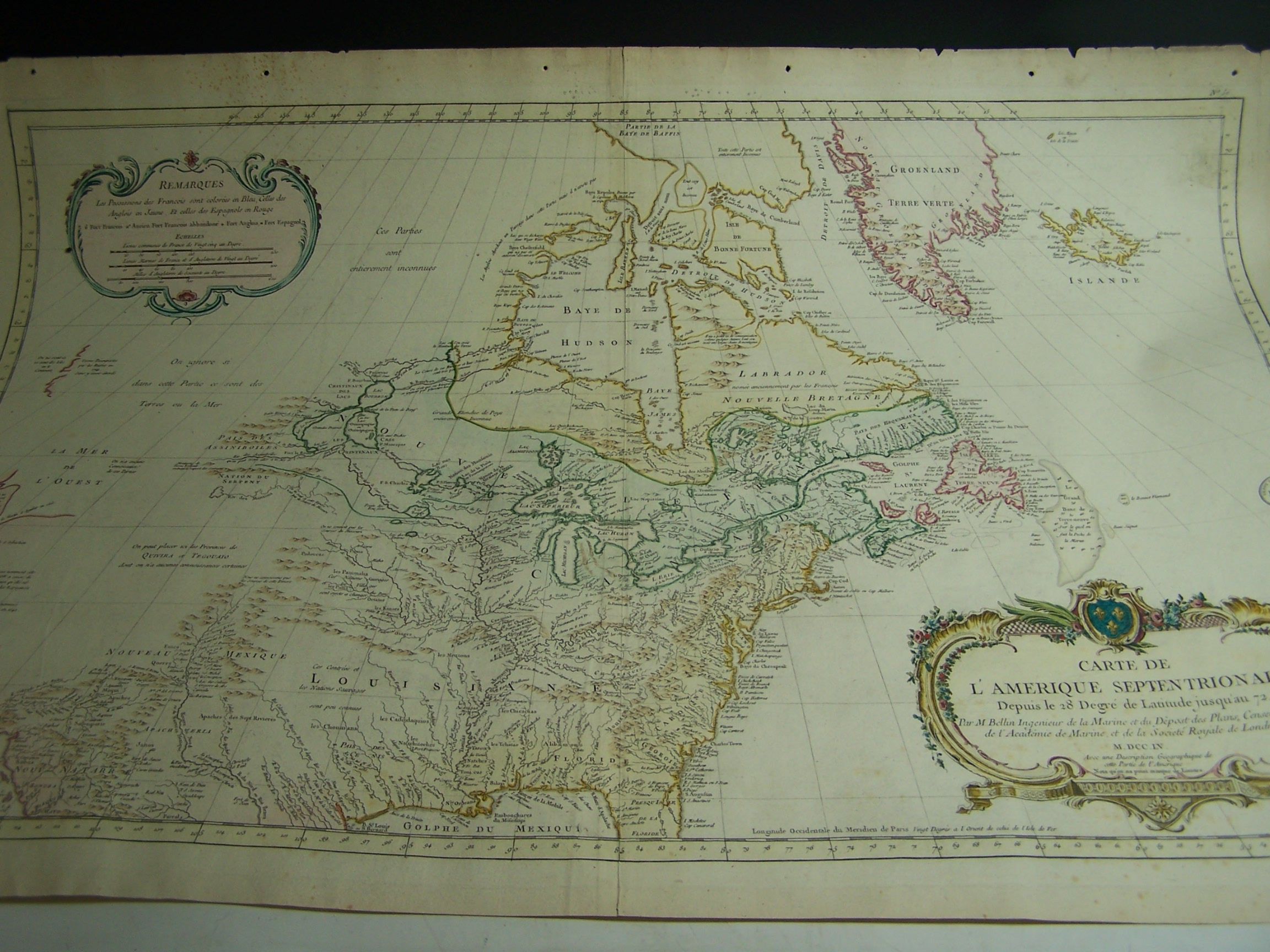 Carte de l’Amerique septentrionale. Paris, 1755 [but c.1805], approx 56 x 86cm, double-page engraved map, coloured by hand, first published in 1755, this example bearing the engraved stamp of the Depot des Cartes et Plans de la Marine with initials ‘E[mpire] F[rancais]', foxing and chipping to edges