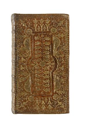 The Holy Bible. Edinburgh: printed by Alexander Kincaid, 1764. 12mo, volume one [of two] only, contemporary Edinburgh red morocco gilt, covers with lobed panels enclosing a herring-bone pattern of parsnip-shaped tools with central star tool, and crown-and-thistle tools to the sides, spine in six comparments each with floral and foliate tools divided by saltire crosses, a.e.g., Dutch floral paper pastedowns, some rubbing to edges
