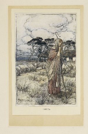 Tales from Shakespeare. London: J.M. Dent, 1909. 4to, number 358 of 750 copies, signed by Rackham, 13 tipped in plates, original cream cloth gilt, original silk ties, some staining to binding and endpapers