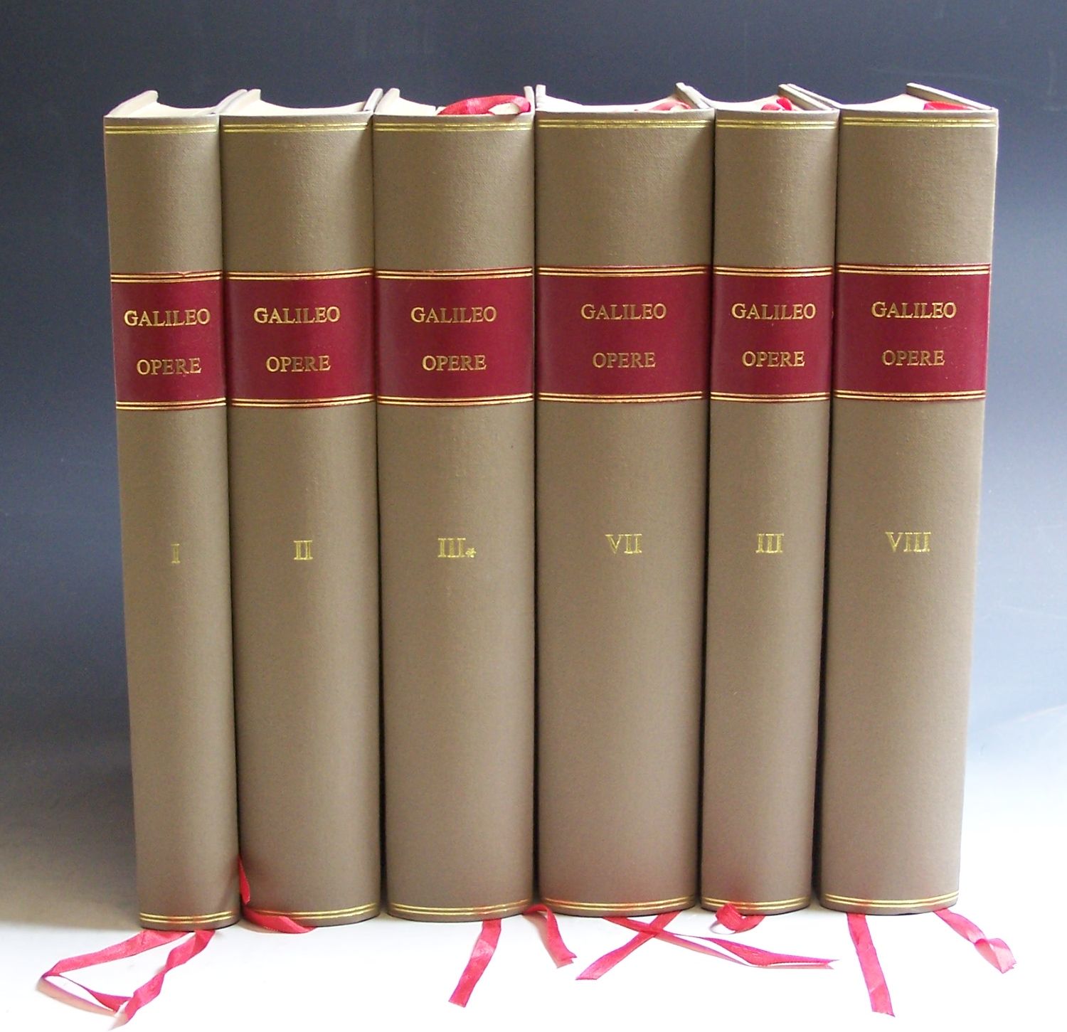Le opere. Nuova ristampa della edizione nazionale. Florence: G. Barbera, 1968. 20 volumes bound in 21, 4to, plates, illustrations, diagrams, cloth, red morocco labels gilt, a very clean set