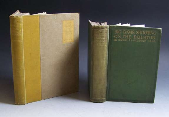 Big game shooting on the Equator. London, 1908. 8vo, photographic plates [some with chipping to edges], original green cloth gilt, some staining to boards, fading to backstrips, later endpapers, some light foxing; Bell, W.D.M. The wanderings of an elephant hunter. London, 1923. 8vo, frontispiece, 42 plates, original yellow cloth backed boards, some rubbing to edges, some light foxing (2)