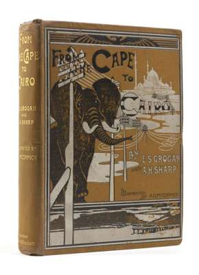 From Cape to Cairo. London: Hurst and Blackett, 1900. First edition, 8vo, presentation copy from the author, signed on front pastedown with a sketch of an elephant by the author, portrait frontispiece, 3 maps [2 folding], illustrated by A.D. McCormick, original decorative cloth gilt, some rubbing, marginal water staining to frontispiece and endpapers, some light spotting
