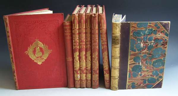 Tiger-shooting in India. London: Smith Elder, 1857. 4to, 12 tinted lithographed plates, contemporary half calf, spine gilt, [Abbey, Travel 484], very slightly rubbed; Jones, Oliver J. Recollections of a winter campaign in India, in 1857-58. London: Saunders & Otley, 1859. 4to, 8 (of 15) lithographed plates and 2 plans, original cloth; Ball, Charles The history of the Indian mutiny. London: Printing and Publishing Co., [n.d.]. 6 volumes [of 7], 4to, additional title, double-page map and 71 (of 80) engraved plates, original red cloth gilt, one plate torn, some spotted, two spines with tear (8)