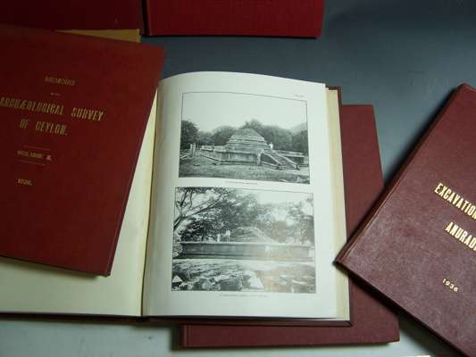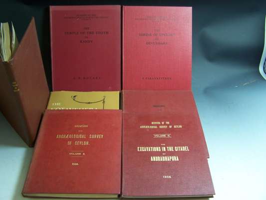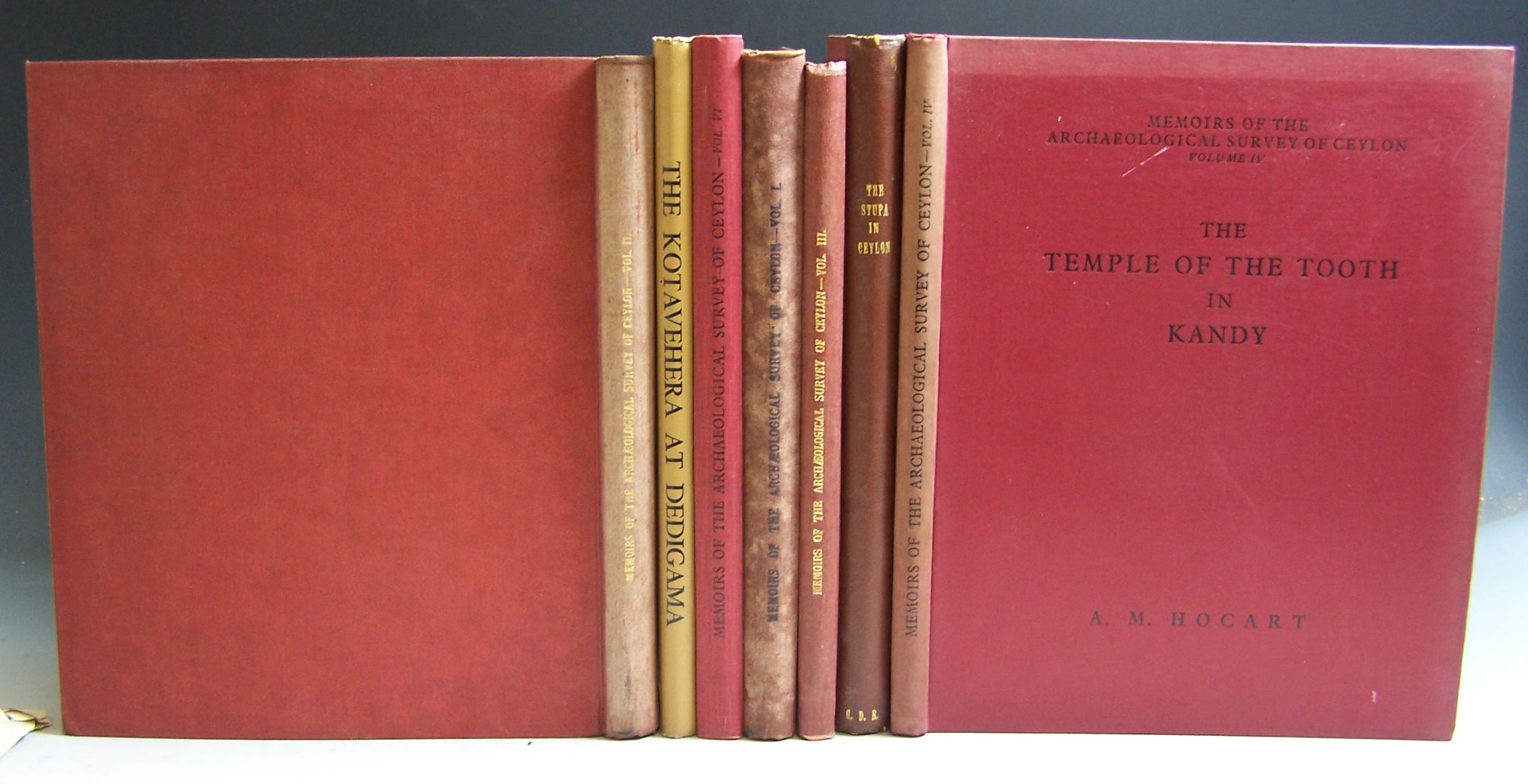 Memoirs, edited by A.M. Hocart and S. Paranavitana. Colombo: A.C. Richards &c., [192469]. Volumes 1-7, 4to, numerous plates, folding pans and maps, original cloth [except for volume 5], including S. Paranavitana's The excavations in the citadel of Anuradhapura; The stupa in Ceylon; The temple of the tooth in Kandy; The Kotavehera at Dedigama; The shrine of Upulvan at Devundara (7)