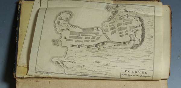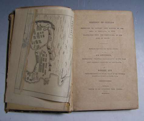 History of Ceylon. Colombo: Government Press, 1847. 8vo, 4 folding engraved plans, folding printed table, contemporary roan, one plate detached, rubbed, browned, worn