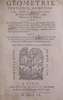 Geometrie practique.... Paris: Denise Cavellat, [1614?] [MDCV IX]. 8vo, [A-T8, V6], wood cut diagrams in text, printer's device on title and verso of last leaf, marginalia, limp vellum [repaired], slipcase, small repairs to various leaves including title, damp-staining to margins