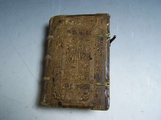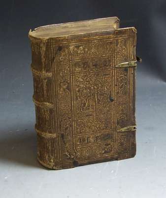 Das alte testament [Five books of Moses only]. Erffurdt: Melchior Dachsen, 1559. 8vo, title in red and black, woodcuts, contemporary blindstamped vellum over wooden boards, ink inscriptions and marginalia, some staining, lacking one brass clasp