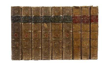 The history of the decline and fall of the Roman Empire. London: W. Strahan & T. Cadell, 1782-87-87-88-88-88. 6 volumes, 4to, volumes 1-3 "New editions", engraved frontispiece, half-titles in volumes 2-6, contemporary speckled calf, green morocco labels, spines gilt, upper joint of volume 6 split, head of volume 5 slightly rubbed, tear to spine of volume 4; Idem Miscellaneous works. London: A. Strahan &c., 1796-1815. 3 volumes, 4to, contemporary calf, rebacked, rubbed, one joint split (9)