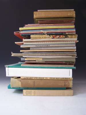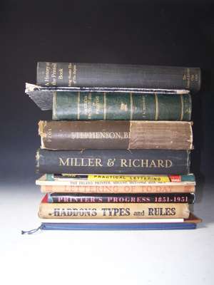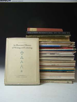 The Kelmscott Press and William Morris master-craftsman. 1924; Original cloth-backed boards, uncut; Consequences. Golden Cockerel Press, 1932. Frontispiece by Eric Ravilious, original cloth, Cockerel motif attached to upper cover; Plomer, Henry R. English printers' ornaments. 1924. 4to, limited to 400 copies, dust-jacket; Curwen, H. Process of graphic reproduction in printing. 1934, dust-jacket; Gwillim, P. Slate engraving. 1964. 4to, original wrappers; Harling, R. Alphabet and image. No. 7. May 1948. 4to, original wrappers; Macnab, I. The student's book of wood-engraving. 1938. 4to, original cloth; Leighton, Clare Wood-engraving and woodcuts. 1944. 4to, original cloth; Morison, S. First principles of typography. 1936. 12mo, original boards; [Feyerabend, S.] A true description of all trades. New York, 1930. 8vo, limited to 400 copies, woodcuts, original boards; City of Birmingham School of Printing. Modern typography in monotype Gill sans-serif. 1932. 4to, original wrappers; Caslon,W. Caslon old face. [N.d.], 4to, original wrappers; Leicester College of Arts and Crafts Printing year book 1932. 4to, original wrappers, rubbed; Cleverdon, Douglas. The engravings of David Jones. Prospectus no. 13 of 500 copies, wrappers; Bridges, R. The message of one of England's greatest poets to a printer. 4to, limited to 250 copies, an unnumbered copy, original cloth-backed boards; Ganillon, S. Maya. Golden Cockerel Press, 1930. 8vo, limited to 500 copies, original cloth, spine discoloured; Skelton, E. Eric Gill. The engravings. 1990; Soldans Ltd. Specimen book of Bauer types. [N.d.], 4to, original cloth; Cave, T. John Baskerville: the printer. 1936; Moran, J. Fit to be styled a typographer. 1978. Dust-jacket; Holloway, M. Some letters of Pino Orioli to Mrs Gordon Crotch. Tragara Press, 1974. 8vo, number 31 of 120 copies, original quarter cloth; Grosvenor, Chater & Co. A specimen book of papers from Abbey Mills. 1958. 4to, cloth, dust-jacket; and c.215 pamphlets and books related to printing, typography, bookbinding &c. (c.235); and copies of Typographia, & other printing journals
