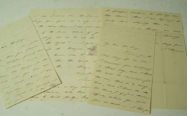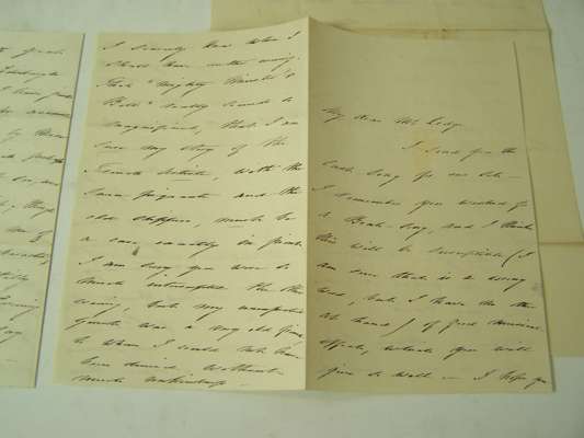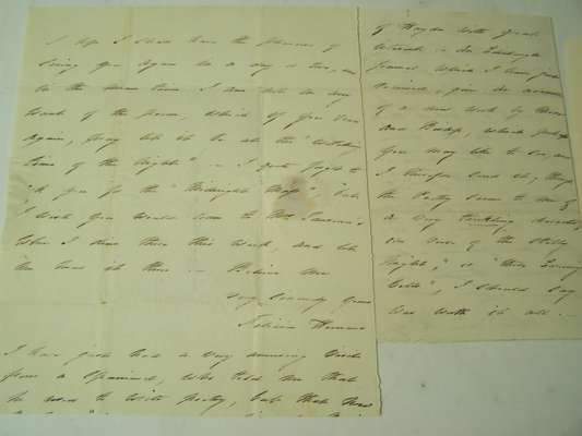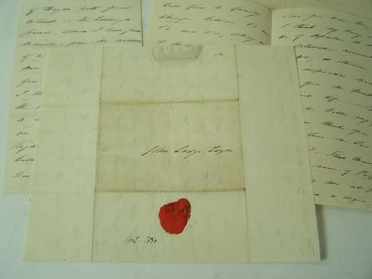 Two A.L.S. to John Lodge, complimenting him on his music, referring to her writing ("the stream of melody has been such such full flow"), claiming that "Frank Brewster, known by the name of People is tormenting me", asking John Lodge to read her poems "at the witching time of the night", discussing the "Ricciarda", assuring him she would be delighted with his arrangement of the "Parting words", praising his shades and fluctuations of feeling "which I so often vainly strive to give in language", discussing Pergolesi's music and a life of Haydn